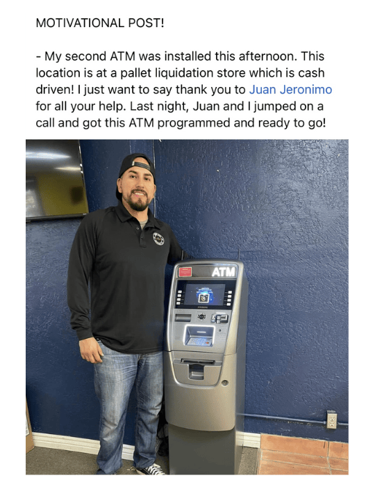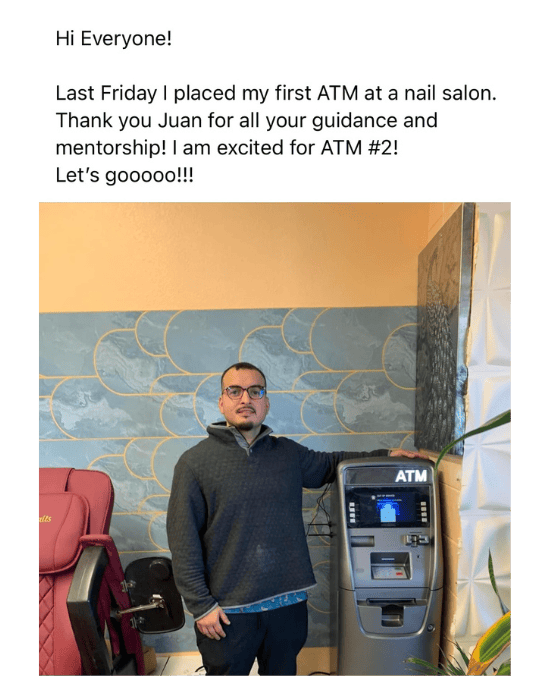 Be a part of our Private Community where we share real experiences, motivation and inspire others to start an additional stream of income with ATMs.